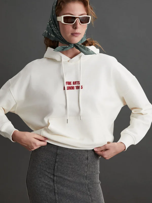Design: Capuchon met trekkoord, Geribd ceintuurtje, Overcut schouder, Kangaroo zak; Materiaal: Sweatstof; Halstype: Capuchon; Motief: Tekst print; Details: Borduursels; Extra's: Applicaties, Op staal naden, Voelt zacht aan; Pasvorm: Losse pasvorm; Armlengte: Lange mouw; Lengte: Normale lengte