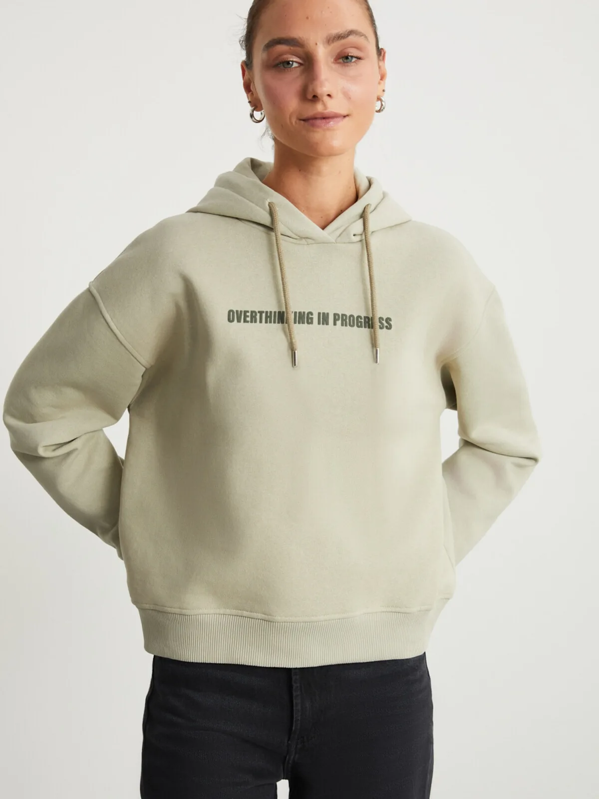 Design: Rechte zoom, Capuchon met trekkoord, Geribd ceintuurtje; Materiaal: Sweatstof; Halstype: Capuchon; Motief: Tekst print; Extra's: Op staal naden, Voelt zacht aan; Pasvorm: Normale pasvorm; Armlengte: Lange mouw; Lengte: Normale lengte