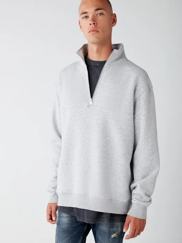 Design: Geribd ceintuurtje, Overcut schouder, Halve rits; Type sluiting: Ritssluiting; Materiaal: Sweatstof; Halstype: Schipperskraag; Motief: Mélange; Extra's: Op staal naden, Voelt zacht aan; Pasvorm: Losse pasvorm; Armlengte: Lange mouw