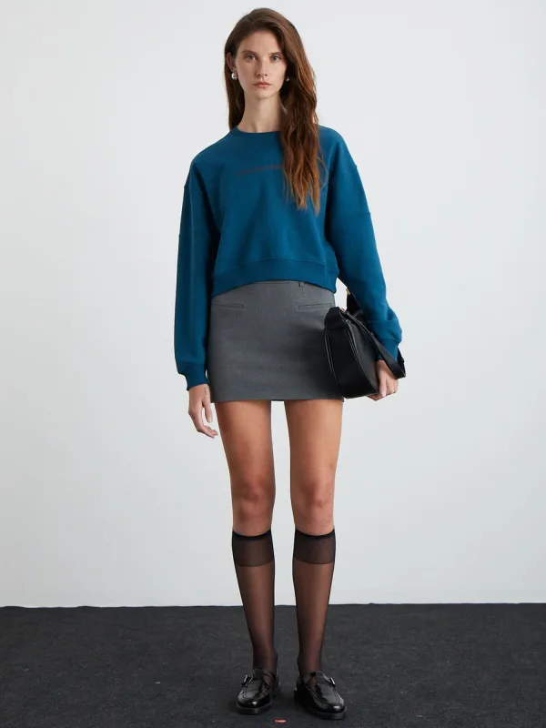 Design: Geribbelde kraag, Geribd ceintuurtje, Overcut schouder; Materiaal: Sweatstof; Halstype: Ronde hals; Motief: Tekst print; Extra's: Op staal naden, Draagbaar op 2 manieren; Pasvorm: Losse pasvorm; Armlengte: Lange mouw; Lengte: Korte pasvorm