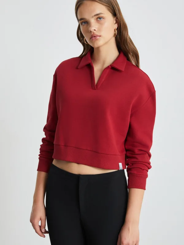 Design: Geribd ceintuurtje, Overcut schouder; Materiaal: Sweatstof; Halstype: Polokraag; Motief: Effen; Extra's: Op staal naden, Voelt zacht aan; Pasvorm: Losse pasvorm; Armlengte: Lange mouw; Lengte: Korte pasvorm