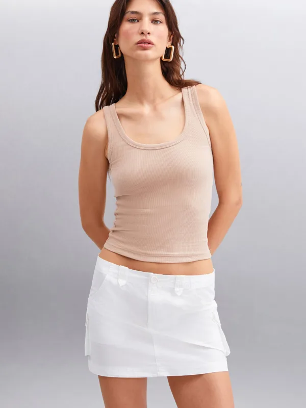 Design: Geribbeld gebreid, Ingelegde kraag; Materiaal: Jersey; Halstype: Ronde hals; Motief: Effen; Soort bandjes: Normale bandjes; Extra's: Voelt zacht aan, Huidvriendelijk materiaal; Pasvorm: Slanke pasvorm; Armlengte: Mouwloos; Lengte: Korte pasvorm