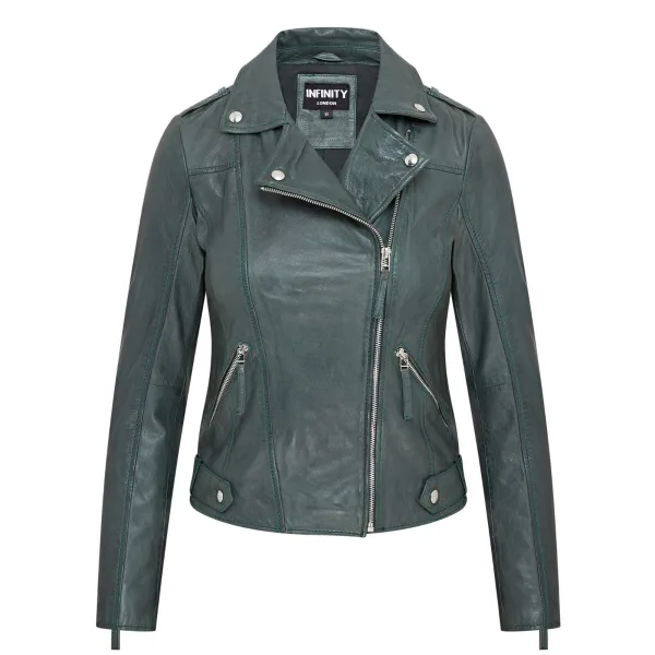 Groen leren bikerjack voor dames – Denver