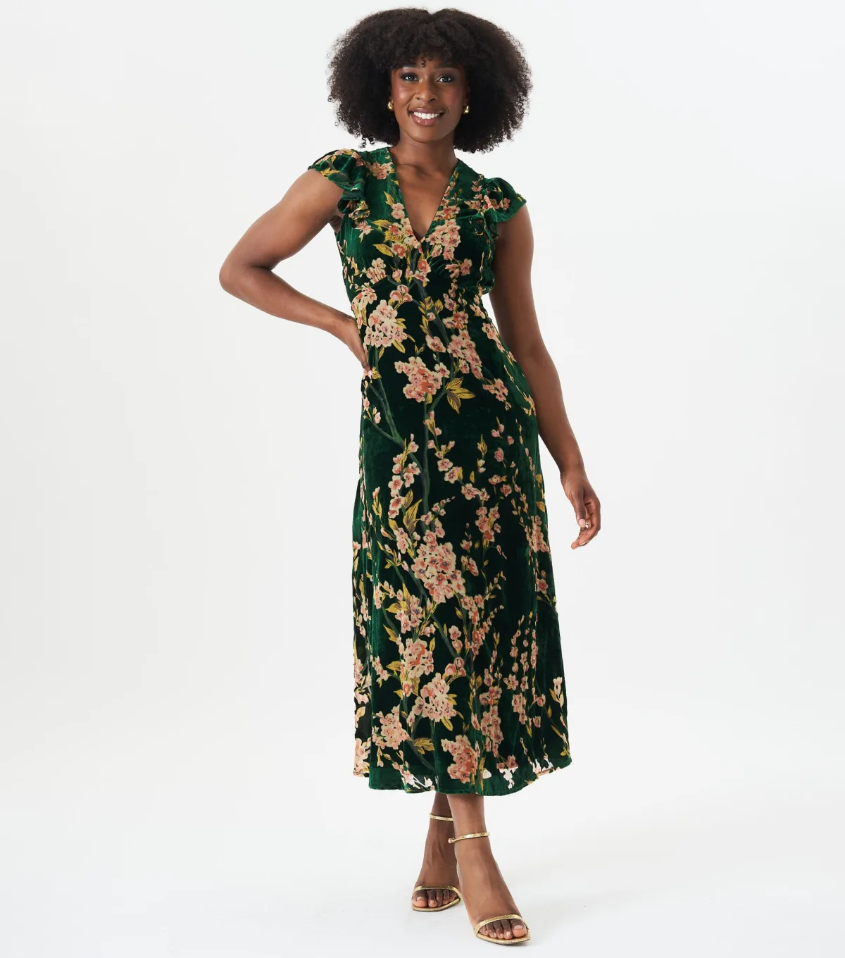 | Prijsgeschiedenis voor Groene bloemen Devore midaxi-jurk met ruches en V-hals | |
