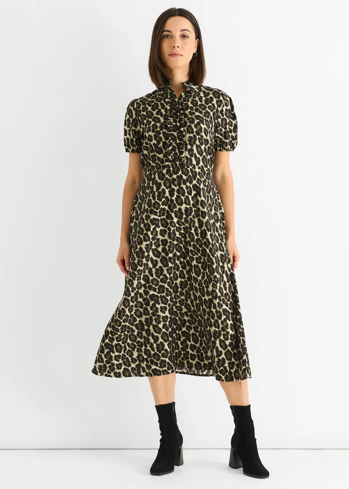 Groene Dierenprint Rimpel Hals Midi Jurk Prijzen