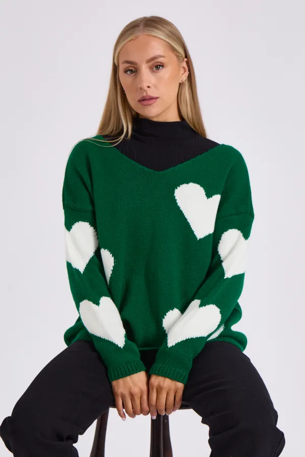 Geef je mode een boost met onze groene oversized hartgebreide trui met V-hals. Deze stijlvolle en comfortabele trui heeft een flatterende V-hals en een oversized pasvorm. Hij is gemaakt met een prachtig hartvormig breipatroon en houdt je het hele seizoen gezellig en trendy. Voeg vandaag nog een vleugje kleur toe aan je garderobe!