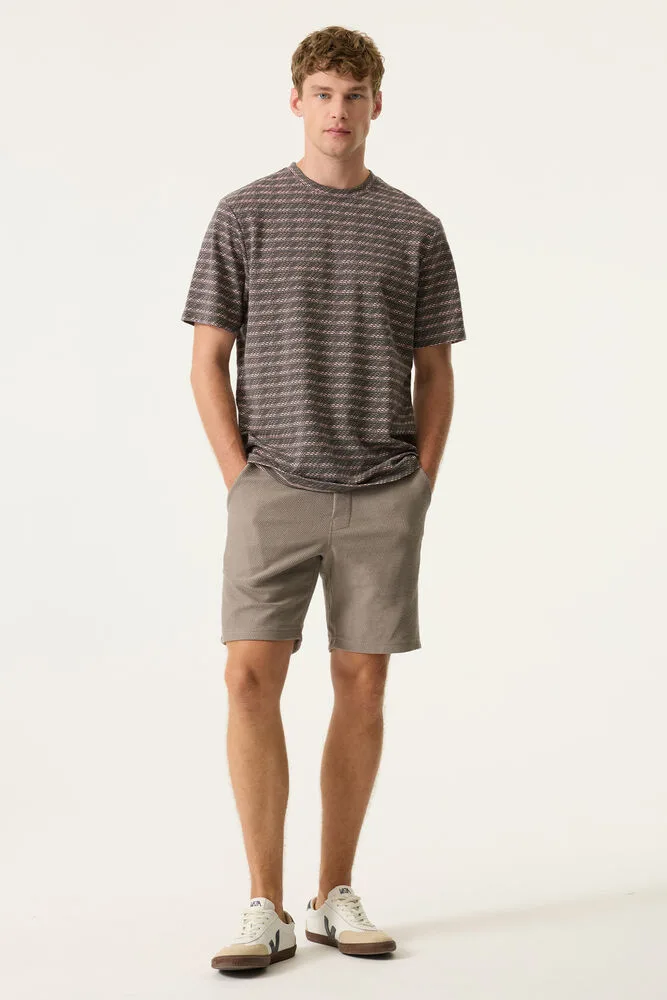 Short met structuur. Deze short heeft een elastische tailleband met trekkoorden, een regular taille en een regular fit. Dit item is gemaakt van 72% katoen en 28% polyester. Better Cotton is een initiatief dat zich wereldwijd inzet voor betere omstandigheden in de katoenindustrie.