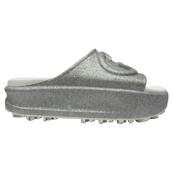 | Prijsgeschiedenis voor Gucci GG Logo Glanzende Slippers in Zilver Rubber | |