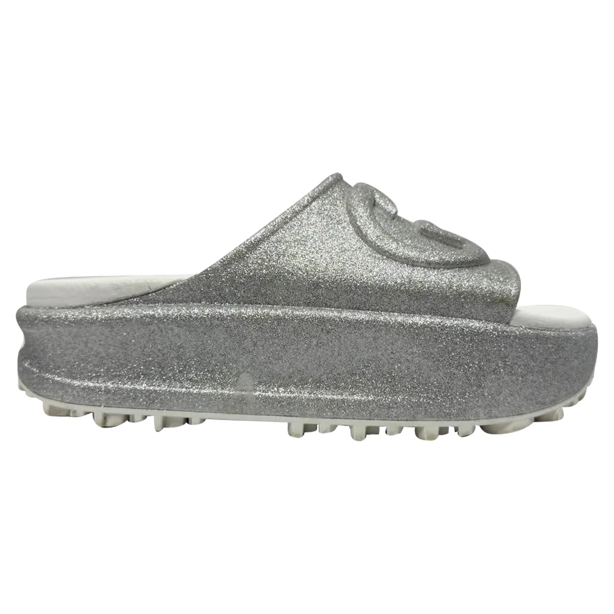 - Bij secretsales.nl kun je Gucci GG Logo Glanzende Slippers in Zilver Rubber kopen voor slechts €280,00