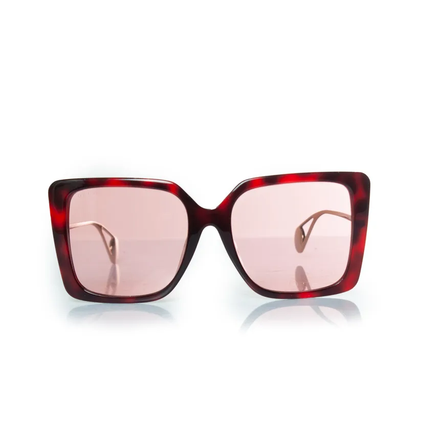 Gucci, roze oversized Havana-zonnebrillen met schildpadprint. Het item is nieuw. Wordt geleverd met een boekje. TOESTAND: nieuw - niet gedragen CODE: GG0435SA AFMETINGEN: hoogte lens 5,5 cm, breedte lens 6 cm, breedte montuur 13,5 cm MATERIAAL: plastic KLEUR: goud, roze PRODUCTLOCATIE: Nederland PRODUCTNUMMER: 9018