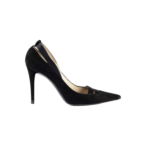VINTAGE, RRP ALS NIEUWE Verhoog elke look met deze Gucci pumps met spitse neus en hoge hak. Deze klassieke stilettos zijn vervaardigd uit zwart suède leer. De satijnen strikdetails aan de punt en de enkel bieden een elegante touch. Gegarandeerde productauthenticiteit: Dit product wordt geleverd door een gerenommeerde en vertrouwde partner. Met deze aankoop behoud je icon vakmanschap, vier je erfgoed en omarm je de schoonheid van bewust winkelen. Afmetingen: lengte: 265 mm