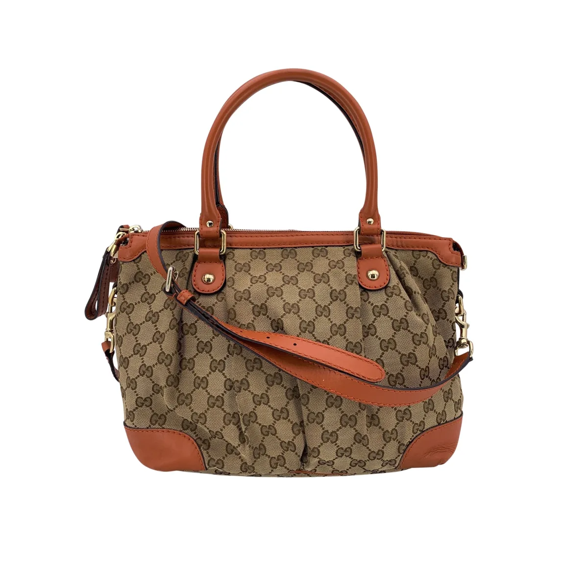 Aanbevolen verkoopprijs De Gucci Sukey schoudertas is een tijdloos stuk dat de verfijnde geest van het Gucci-ontwerp van begin jaren 2000 vastlegt. Gemaakt van beige GG-monogramcanvas met oranje leren afwerking, combineert dit model (2000-2015) elegantie met dagelijkse functionaliteit. Hij is voorzien van dubbele gerolde leren handvatten, een afneembare, verstelbare schouderriem en een ritssluiting aan de bovenkant die opent naar een met stof gevoerde binnenkant met één rits en twee open vakken. In warme kleuren belichaamt de Sukey de klassieke verfijning van Gucci - moeiteloos stijlvol en eindeloos veelzijdig. 'Gucci - Made in Italy'-label aan de binnenkant (met serienummer op de achterkant). Conditiebeoordeling: B - ZEER GOEDE STAATConditiedetails: Licht gebruikt. Normale gebruikssporen aan de onderste hoeken. Enkele penstrepen en vlekken op de binnenvoering. Controleer de afbeeldingen zorgvuldig. Sommige tonen pijlen die een duidelijk defect aangeven. Vraag gerust als u meer informatie nodig heeft of als u twijfels heeft. Afmetingen (cm): Diepte: 15,2 Hoogte: 21,6 Lengte: 33,0 Overige details: Stofzak? Nee Sleutels? Nee Doos? Nee Afmetingen: Breedte: 152 mm Lengte: 330 mm Hoogte: 216 mm Bandlengte: 0 mm Handvat: 0 mm