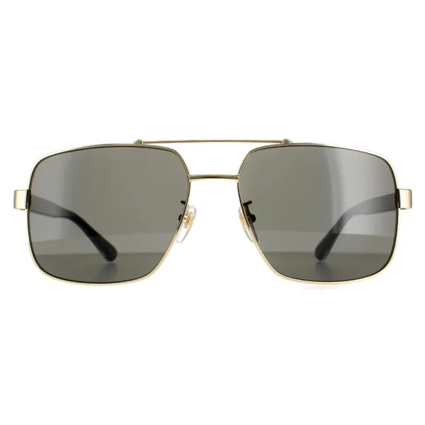 Gucci Square Mannen Gold Black Gray GG0529S Zonnebril zijn een vierkante vliegerstijl met de typische dubbele bruglook en slanke acetaattempels met het Gucci -logo en merkkleurstrepen