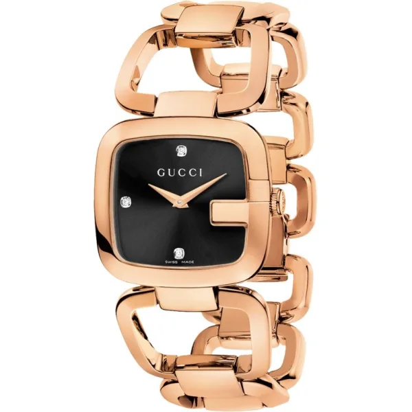 Geïnspireerd door de iconische Gucci-lijnen met een moderne update, belichaamt dit Gucci G-Gucci vergulde diamanten dameshorloge de designerstijl. Gucci staat wereldwijd bekend om hun kenmerkende stijl van Zwitserse uurwerken, gecombineerd met uitstekend Italiaans vakmanschap om collecties te vormen die traditionele elegantie uitstralen. Dit prachtige horloge is vastgemaakt met een vergulde PVD roestvrijstalen schakelarmband en heeft een 32 mm vergulde PVD roestvrijstalen kast met een gepolijste lunette. Krasbestendig saffierglas beschermt de zwarte wijzerplaat die wordt versterkt door glinsterende diamanten uurmarkeringen voor een vleugje sprankeling, afgewerkt met gouden wijzers en iconische branding. Dit prachtige horloge is waterbestendig tot 30 meter en wordt aangedreven door een Zwitsers quartz uurwerk. Maak deel uit van een van de meest iconische designermerken ter wereld met dit ongelooflijk luxueuze Gucci-horloge.