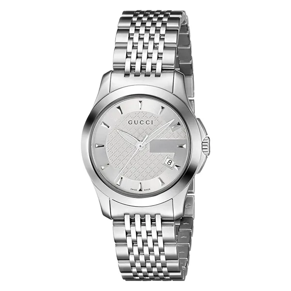 Verbluffend mooi dames Gucci roestvrijstalen horloge, wordt geleverd met een kleine witte wijzerplaat van 27 mm en is waterbestendig tot 30 meter.