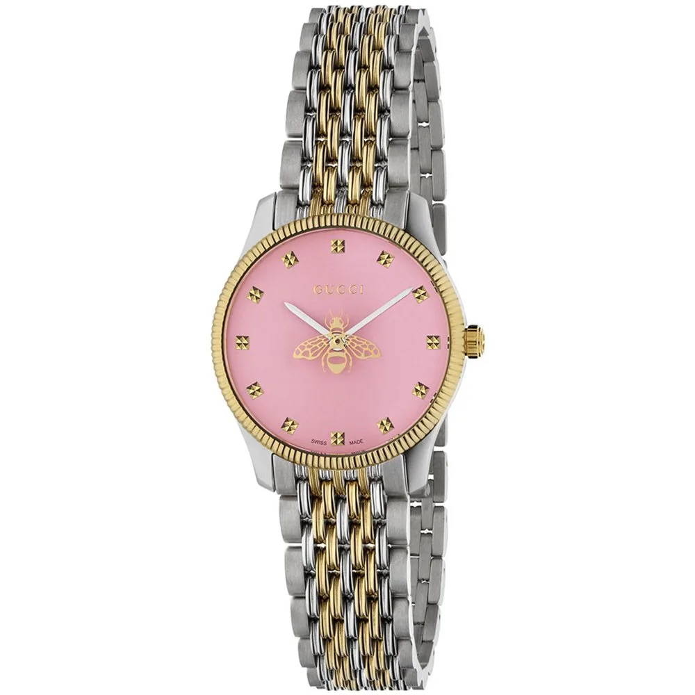 - Bij secretsales.nl kun je Gucci YA1265030 G-Timeless 29mm Dames Roze Wijzerplaat Bijen Motief Horloge kopen voor slechts €718,80