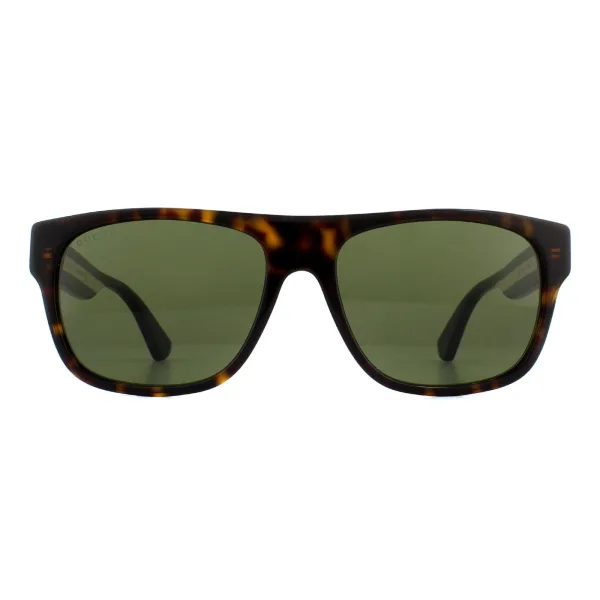 Gucci Zonnebril GG0341S 003 Havana Groen zijn een eenvoudige en stijlvolle rechthoekige stijl voor mannen met gestreepte groene en rode tempels met het Gucci-tekstlogo op het scharnier. Flatterend en veelzijdig, ze zijn perfect voor elke gelegenheid en zullen geschikt zijn voor de meeste gezichtsvormen.