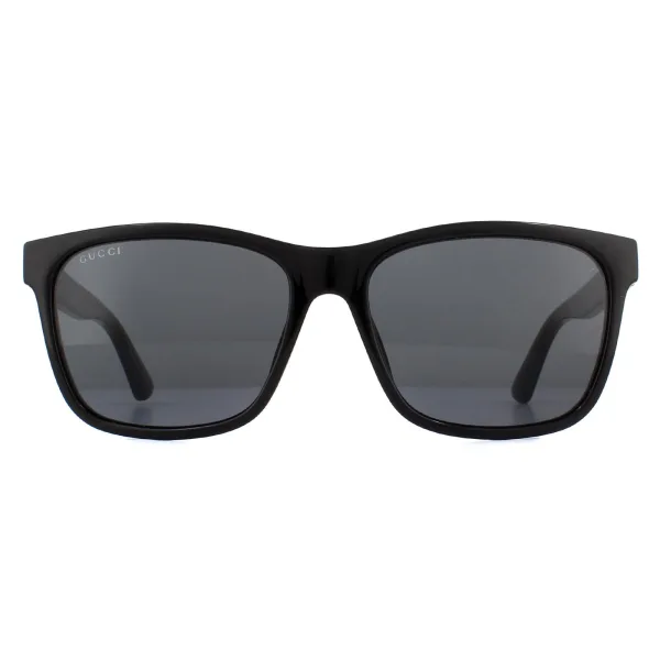 Gucci zonnebrillen GG0746S 001 Black Gray zijn een klassieke rechthoekige stijl gemaakt van dikke acetaat met Gucci -branding op de tempels.