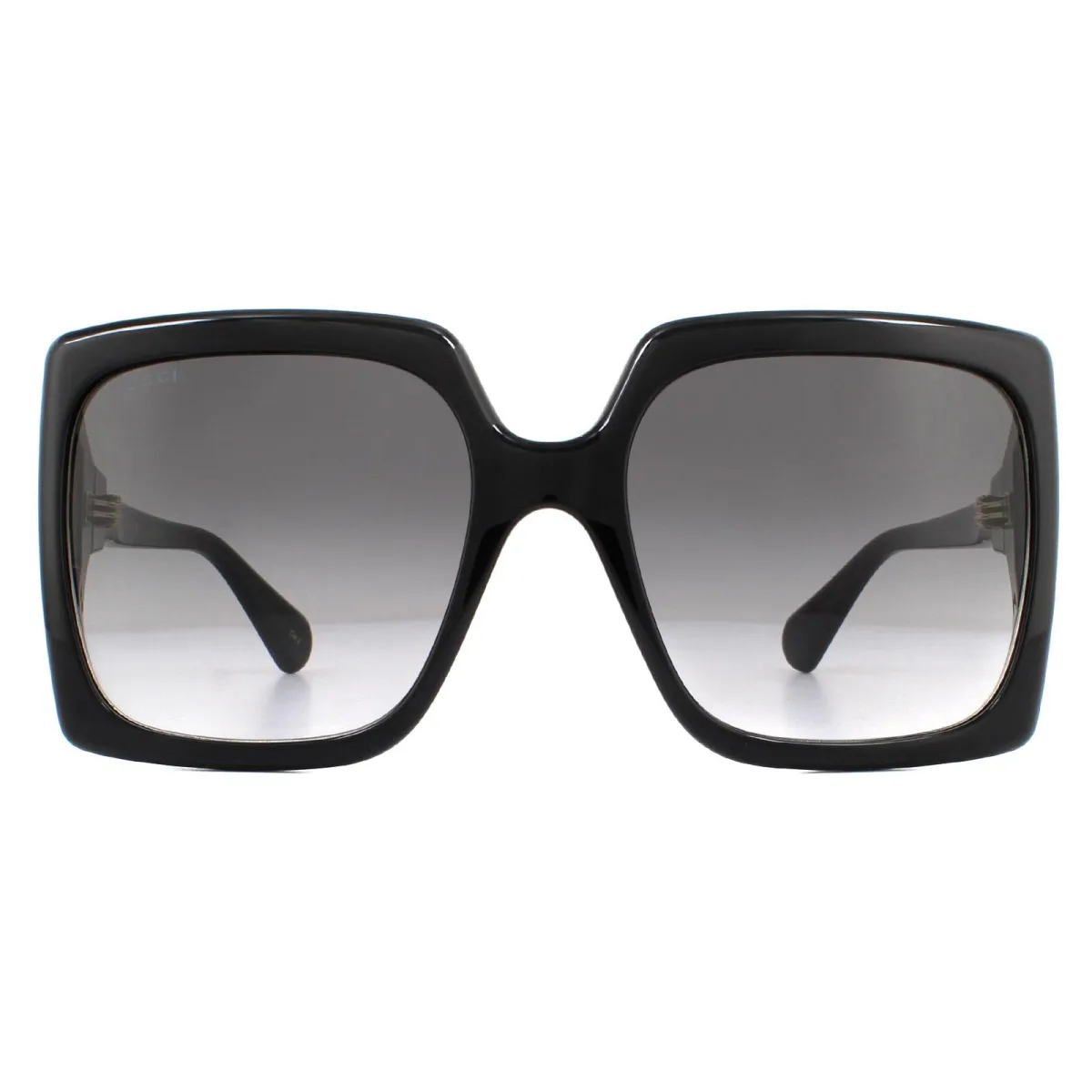Gucci Zonnebril GG0876S 001 Zwart Grijze gradiënt zijn een grote oversized stijl met een vierkante vorm met het in elkaar grijpende Gucci-logo op de scharnieren voor die authentieke Gucci-look.