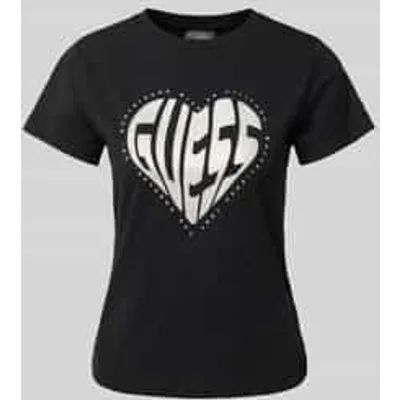 T-shirt van GUESS Activewear voor dames ;Mix van katoen en elastaan;Regular fit;Model 'JULIA';Labeldetail;Geribde ronde hals;Ruglengte bij maat S: 52 cm