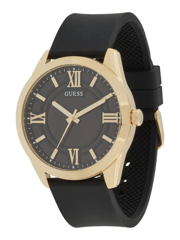 - Bij aboutyou.nl kun je GUESS Analoog horloge 'ELLIOT' goud / zwart kopen voor slechts €99,90 , dat is 21% goedkoper dan bij Secret Sales (€125,78).