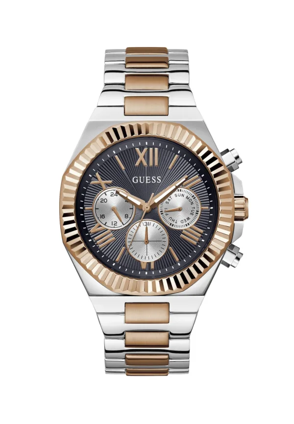 Specificaties: GUESS Analoog horloge ‘EQUITY’ brons / zilver