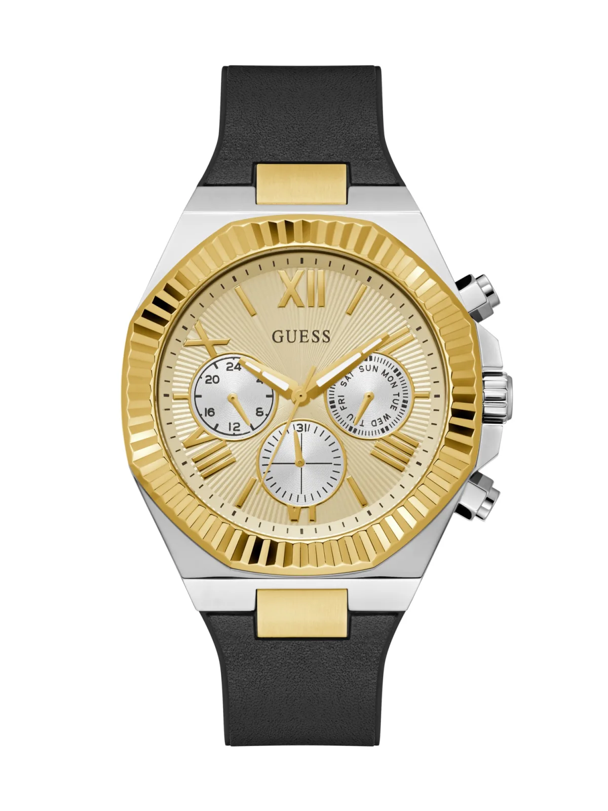 Specificaties: GUESS Analoog horloge ‘ EQUITY ‘ goud / zwart / zilver