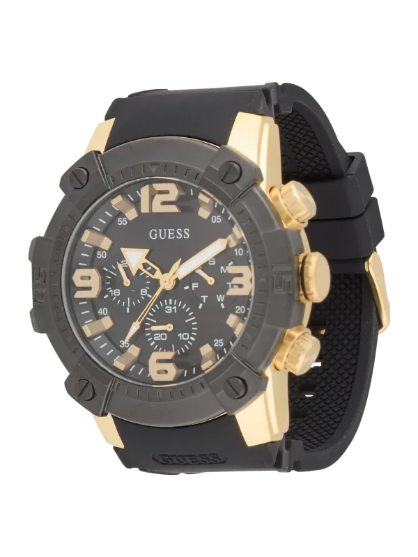 GUESS Analoog horloge ‘LINEBACKER’ goud / zwart