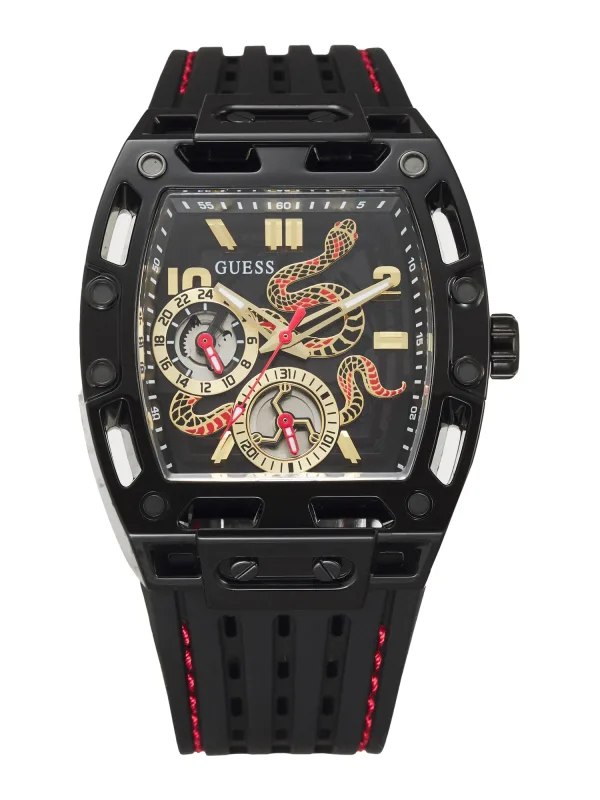 GUESS Analoog horloge ‘Phoenix’ goud / rood / zwart