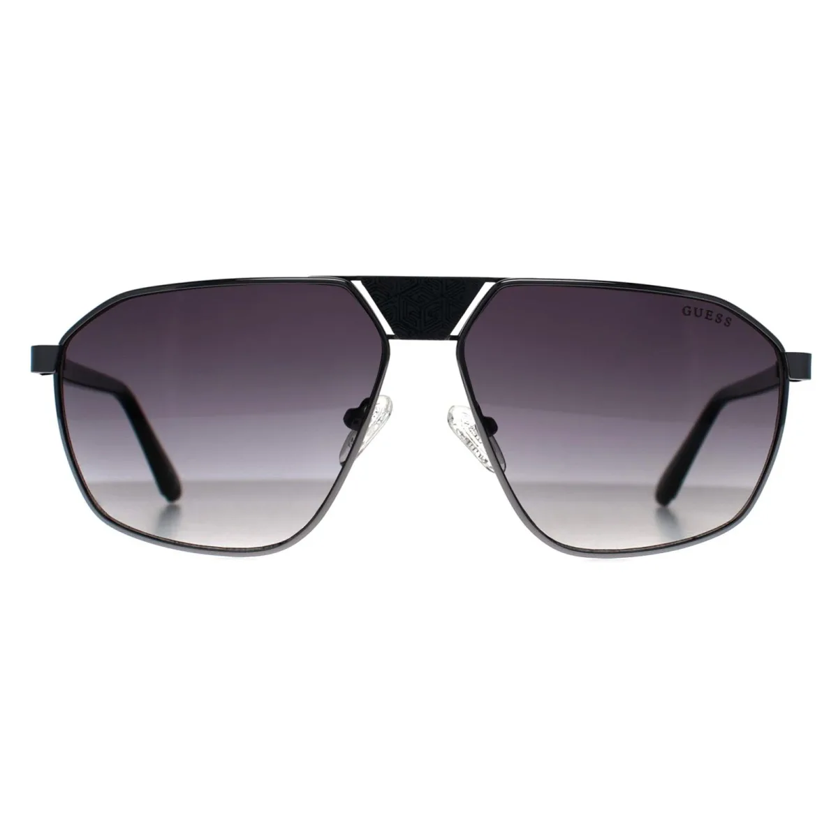 Guess Aviator Heren Glimmend Gunmetal Gradient Smoke GU00086 Zonnebril Verhoog de alledaagse stijl met de GUESS GU00086. Deze moderne versie van de klassieke aviator heeft een slank metalen montuur met opvallende gekleurde glazen. Hij is moeiteloos stijlvol en veelzijdig en geeft elke outfit een gepolijst accent.