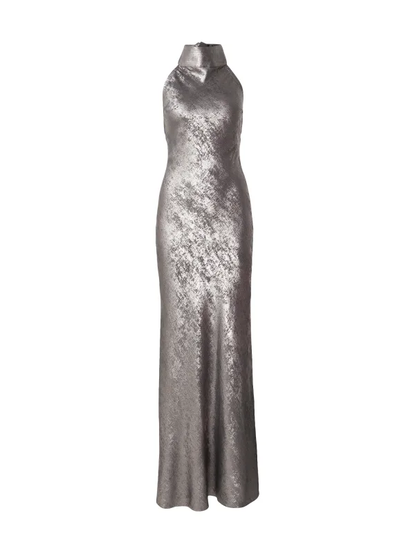 Design: Gevoerde zoom/rand, Rechte zoom; Type sluiting: Ritssluiting; Halstype: Opstaande kraag; Motief: Effen; Soort bandjes: Haltermodel; Details: Backless; Extra's: Glinsterend, Op staal naden, Huidvriendelijk materiaal; Lengte: Lang/maxi; Snit: Figuur omarmend; Pasvorm: Aansluitende pasvorm; Armlengte: Mouwloos