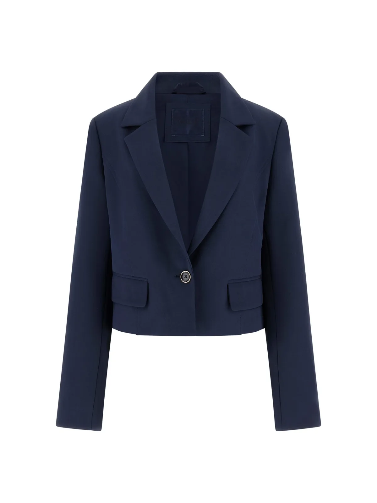 dames blazer van guess;elastische materiaalmix;cropped fit;Model 'Leila';reverskraag;klepzakken;knoopsluiting;ruglengte bij maat s: 47 cm;borstwijdte bij maat s: 42 cm;Mouwlengte bij maat S: 64 cm