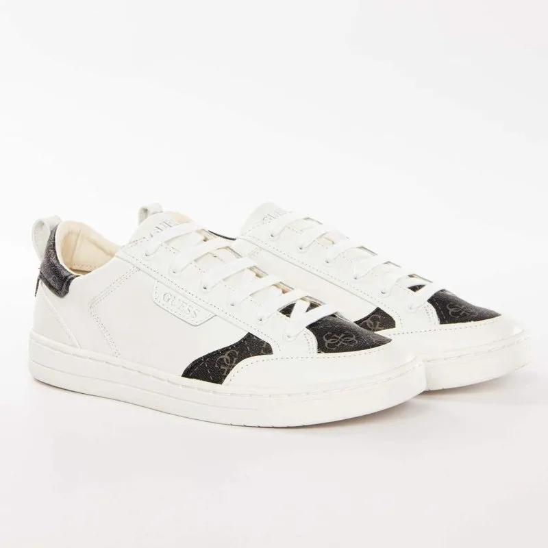 Guess Certosa herensneakers van wit leer. Authentieke urban schoen van Guess - streetwear/sportwear design van Guess - Guess voor modebewuste mannen, perfect voor dagelijks gebruik - deze witte Guess sneakers passen perfect bij de rest van je garderobe - comfortabel leren bovenwerk - klassieke veters - Certosa - synthetisch