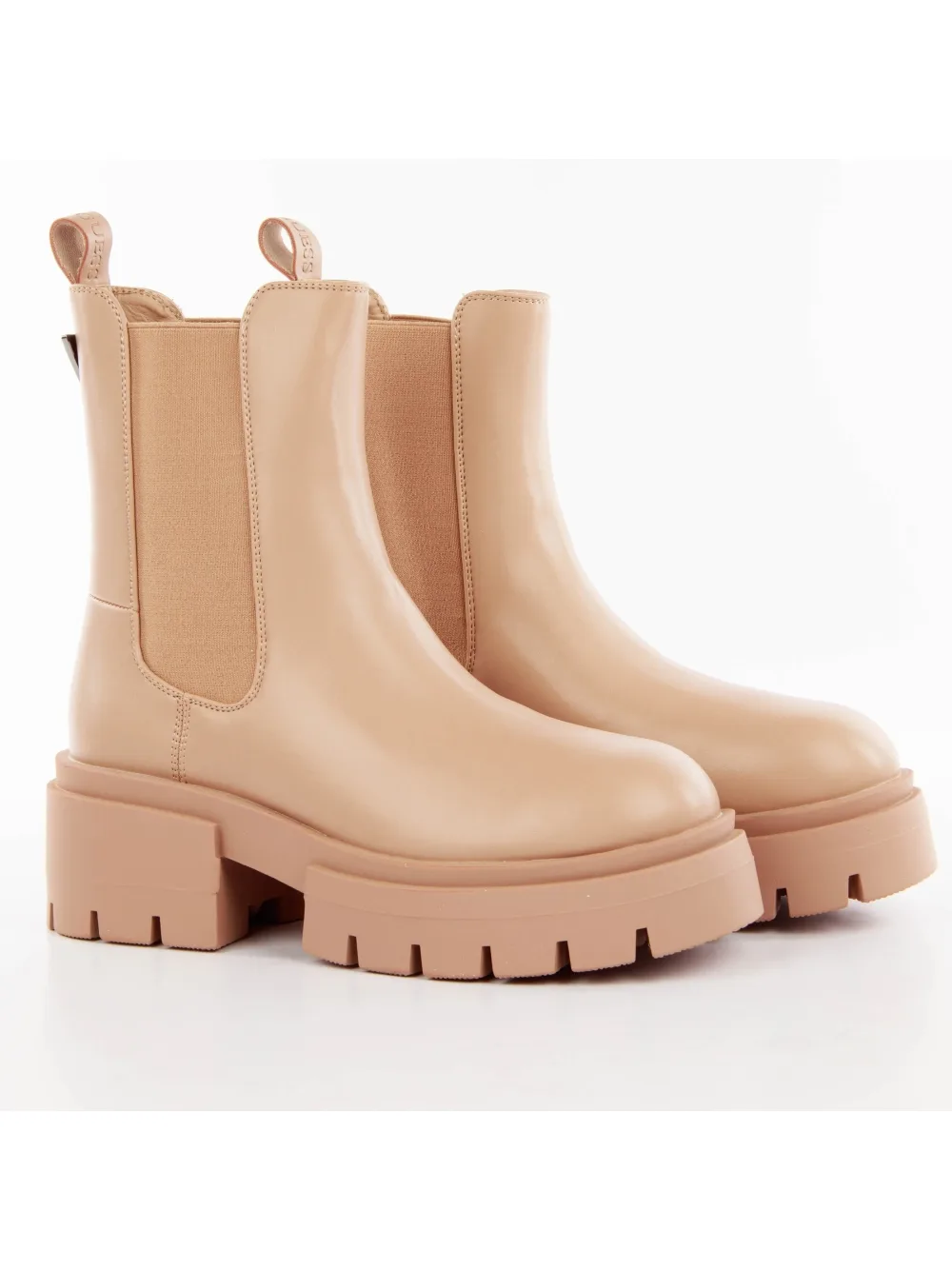 Guess Charlotte enkellaarsjes van imitatieleer in bruin. Authentieke Guess-schoen - streetwear/sportwear design van Guess - Guess voor modebewuste vrouwen, perfect voor dagelijks gebruik - De bruine Guess enkellaarsjes passen perfect bij de rest van je garderobe - Comfortabel imitatieleer - Klassiek elastisch ontwerp - Charlotte - Leer