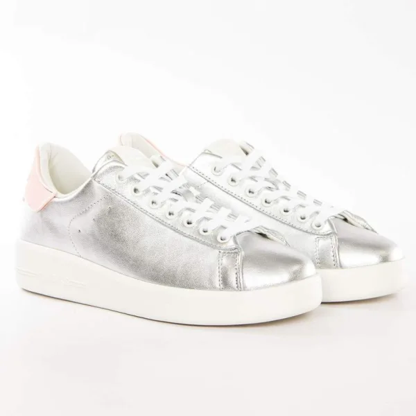 Guess Classic Silver Sneakers voor dames, zilverkleurig synthetisch materiaal. Authentieke Guess-schoen - streetwear/sportstijl design van Guess - Guess voor dames, modieus en perfect voor dagelijks gebruik - deze zilveren Guess-sneakers zijn gemakkelijk te combineren met de rest van je garderobe - comfortabel synthetisch materiaal - klassieke veters - klassiek zilver - synthetisch