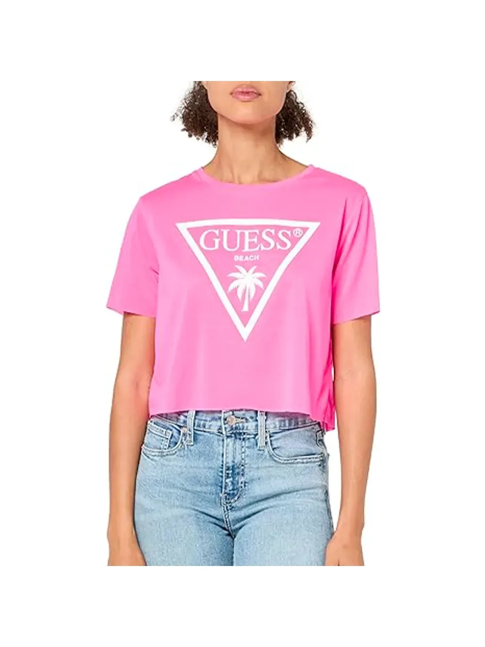 Guess Classic Logo dames T-shirt, roze, katoen. Authentieke Guess merkkleding - streetwear/sportkleding design van Guess - Guess damesmode, perfect voor elke dag - dit roze Guess T-shirt is een perfecte aanvulling op je garderobe - comfortabel katoen - klassiek - Classic Logo -
