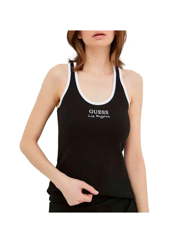 Guess Los Angeles dames T-shirt van zwart katoen. Authentiek Guess-merkkledingstuk - streetwear/sportkleding design van Guess - Guess voor modebewuste vrouwen, perfect voor dagelijks gebruik - dit zwarte Guess T-shirt past perfect bij de rest van je garderobe - comfortabel katoen - klassiek - Los Angeles