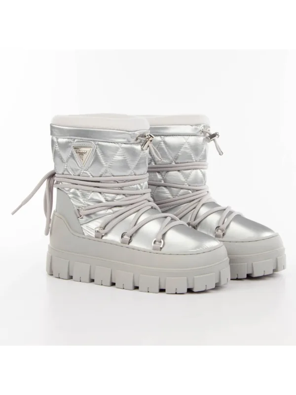 Guess Unique G dameslaarzen, zilverkleurig synthetisch materiaal. Authentieke Guess-schoen - streetwear/sportwear design van Guess - Guess voor dames, trendy en perfect voor dagelijks gebruik - deze zilveren Guess-laarzen zijn ideaal te combineren met de rest van je garderobe - comfortabel synthetisch materiaal - klassieke veters - Unique G - textiel
