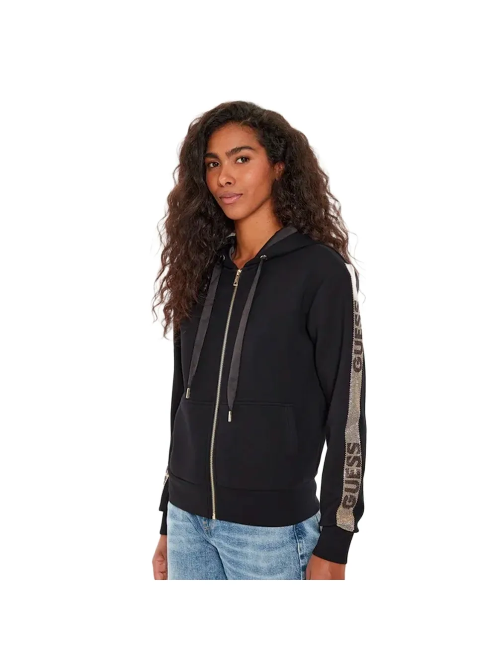 Guess Scuba dames sweater, zwart synthetisch. Authentiek Guess kledingstuk - streetwear/sportwear design van Guess - Guess voor dames, perfect voor dagelijks gebruik - deze zwarte Guess sweater past perfect bij de rest van je garderobe - comfortabel synthetisch materiaal - klassieke scuba stijl.