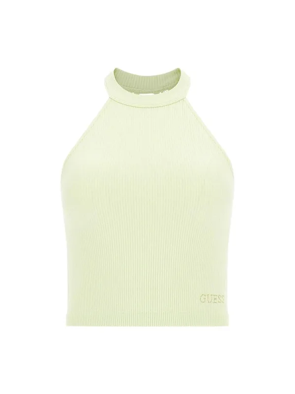 Guess Tori dames tanktop, groen katoen. Authentiek Guess kledingstuk - streetwear/sportstijl design van Guess - Guess voor modebewuste vrouwen, perfect voor dagelijks gebruik - Deze groene Guess tanktop past perfect bij de rest van je garderobe - comfortabel katoen - klassiek - Tori -
