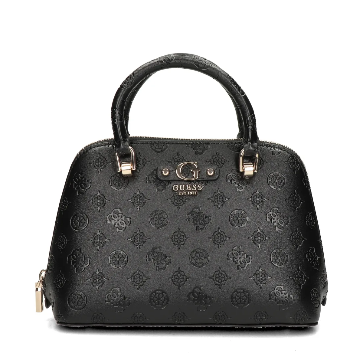 Guess Dita Dome dames handtas Deze handtas met opvallende vorm maakt jouw stijlvolle look helemaal compleet. De ritssluiting loopt tot ver door waardoor je de tas ver kunt openen. Uitgevoerd in imitatieleer met een relilëfmorief van het herkenbare 4G-logo van Guess. De voering is gemaakt van textiel. De tas bestaat uit één hoofdvak met genoeg ruimte voor je essentials. Voor kleinere kostbaarheden zijn er extra insteekvakken aan de binnenkant toegevoegd. Afmetingen:30x19x12 cm.