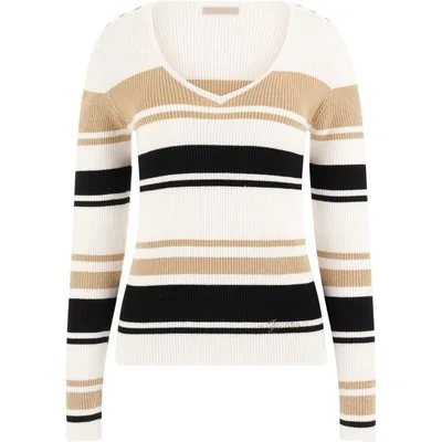 GUESS Eco Evie Striped Vn Ls S White Black Gold Str