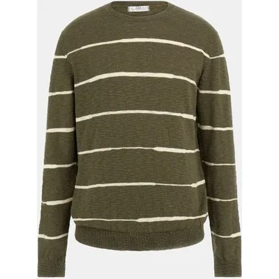 GUESS Eco Grier Cn Ls Striped Olive Quicksand Irre
