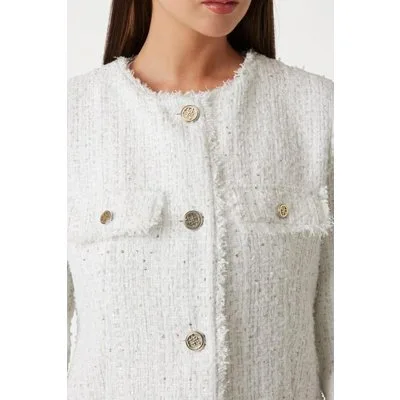 GUESS Eco Noelie Tweed Jacket Cream White Multi