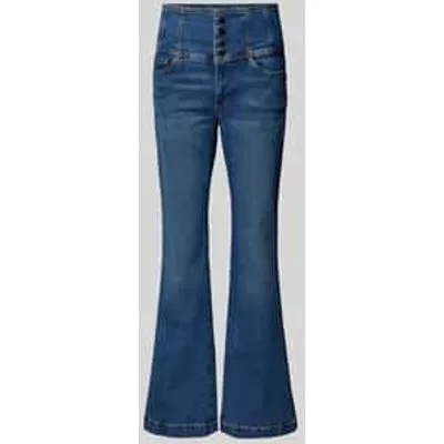 Damesjeans van GUESS;Katoenmix met stretchgehalte;Flared Cut;Effen design;Knoopsluiting;Steekzakken;Bandwijdte bij maat 27/32: 34 cm;Binnenbeenlengte bij maat 27/32: 79 cm