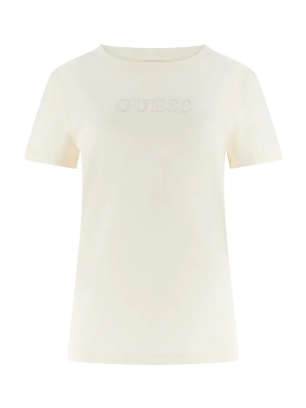Design: Gevoerde zoom/rand, Geribbelde kraag; Materiaal: Jersey; Halstype: Ronde hals; Motief: Logoprint; Details: Sierstenen; Extra's: Voelt zacht aan, Huidvriendelijk materiaal; Pasvorm: Normale pasvorm; Armlengte: Kwartmouw; Lengte: Normale lengte