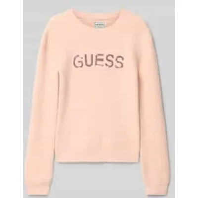 Gebeide kinderpullover van Guess;Materiaalmix met viscosegehalte;Recht model;Ronde hals;Logo-applicatie;Ruglengte bij maat 116: 44 cm;Mouwlengte bij maat 116: 50 cm