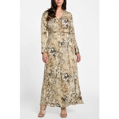 GUESS Giselle Ls Long Dres Jumble Skin Print