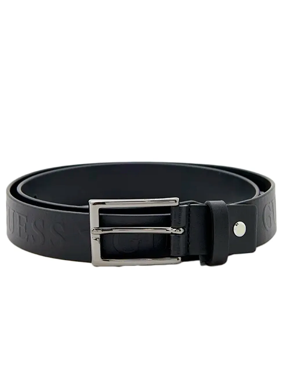 Guess Classic Relief riem voor heren, zwart polyurethaan. Authentiek Guess accessoire - streetwear/sportwear design van Guess - modieus en perfect voor dagelijks gebruik - deze zwarte Guess riem past perfect bij de rest van je garderobe - comfortabel polyurethaan materiaal - klassiek - Classic Relief