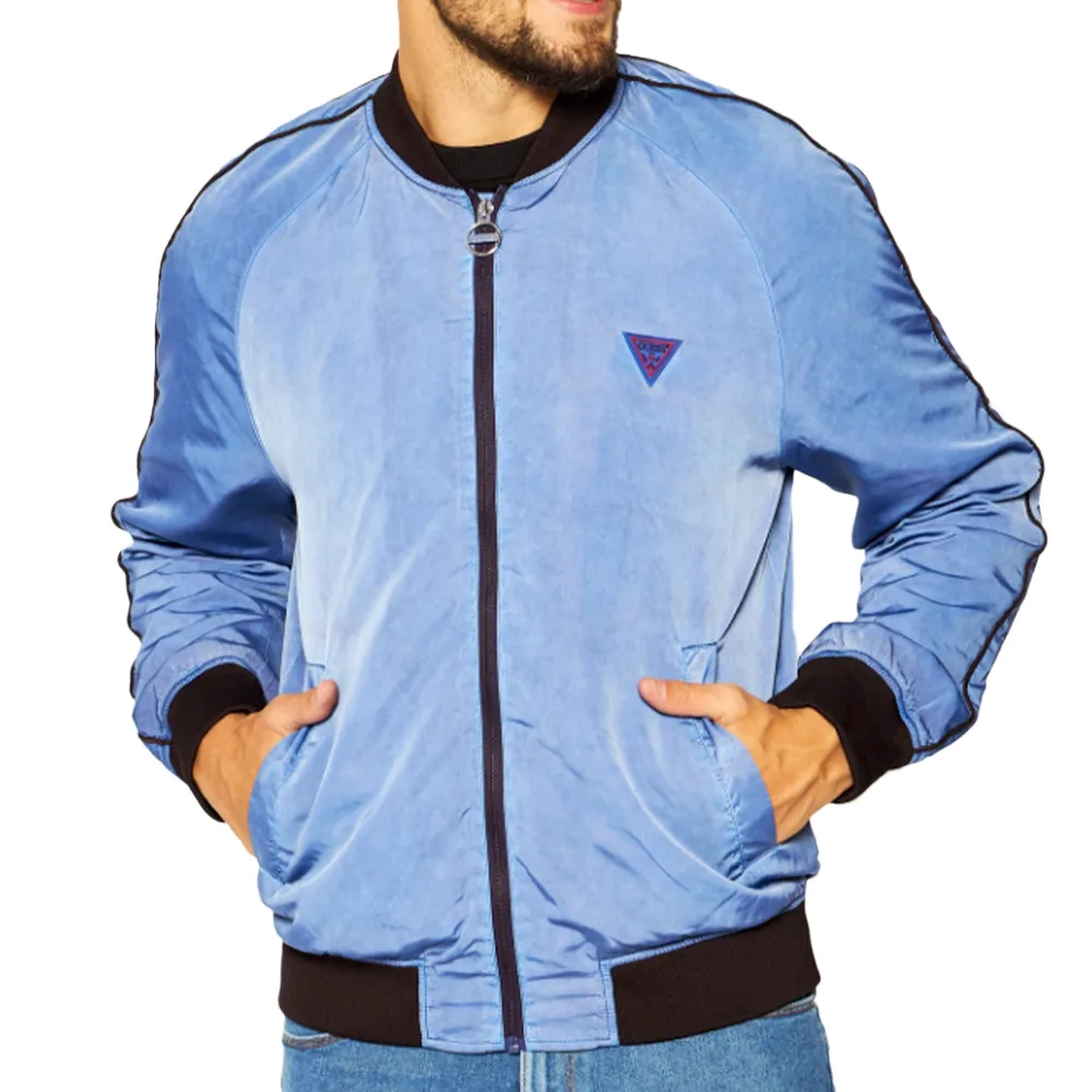 Guess Logo Triangle Classic herenblouson van synthetisch materiaal in blauw. Authentiek Guess-kledingstuk - streetwear/sportwear design van Guess - Guess voor heren, modieus en perfect voor dagelijks gebruik - deze blauwe Guess-blouson is een perfecte aanvulling op je garderobe - comfortabel synthetisch materiaal - klassiek design - Logo Triangle Classic